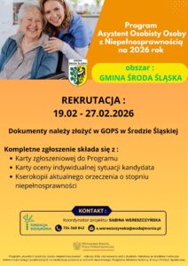 Kwota dofinansowania – 418.476,11 zł. Projekt dofinansowany z środków Funduszu Solidarnościowego Ministerstwa Rodziny, Pracy i Polityki Społecznej przyznanych w ramach resortowego Programu „Asystent osobisty osoby z niepełnosprawnością” dla Jednostek Samorządu Terytorialnego – edycja 2026.