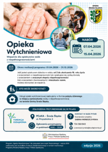 Projekt finansowany z środków Funduszu Solidarnościowego Ministerstwa Rodziny, Pracy i Polityki Społecznej przyznanych w ramach Programu „Opieka wytchnieniowa” dla JST – edycja 2026.
