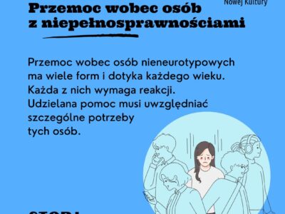 Przemoc wobec osób nieneurotypowych – finał kampanii! Obecna edycja kampanii STOP Przemocy, realizowanej przez Instytut Nowej Kultury, dobiega końca. Dzięki ogromnemu zaangażowaniu wielu osób, instytucji oraz partnerów w działaniach kampanii udział wzięło ponad 700 samorządów, a w webinarach uczestniczyło łącznie ponad 1500 osób. To realny dowód na to, że wspólnie… View Article