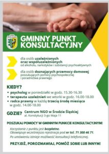 Gminny Punkt Konsultacyjny znajduje się w Centrum NGO w Środzie Śląskiej – al. Konstytucji 3-go Maja 11.